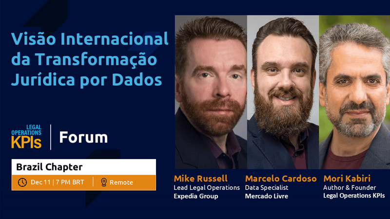🔹 Mori Kabiri, autor e fundador do Legal Operations KPIs, modera o painel e apresenta lições aprendidas de cases e benchmarks de dezenas de departamentos jurídicos e escritórios.