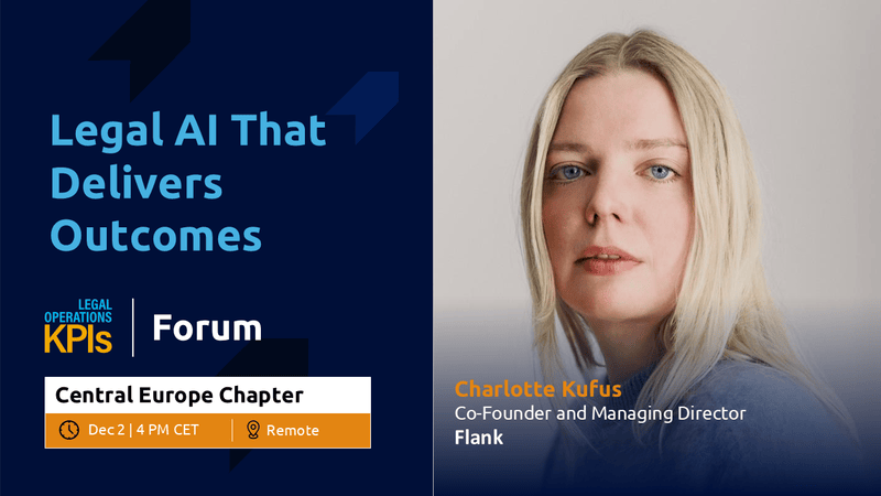 Legal teams are adopting AI faster than ever, yet measuring real business impact remains a challenge. Drawing on real enterprise examples, Charlotte Kufus, Co-Founder and Managing Director at Flank, will outline where to begin when getting started with Legal AI.  How to identify high-value repetitive use cases, avoid common pitfalls, and ensure implementations deliver clear, measurable business impact.  She will also break down the key differences between assistive AI tools and AI Agents, clarifying what each can (and cannot) replace within modern legal teams.
